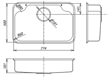 KT lọt lòng: L774×W500×H181mm