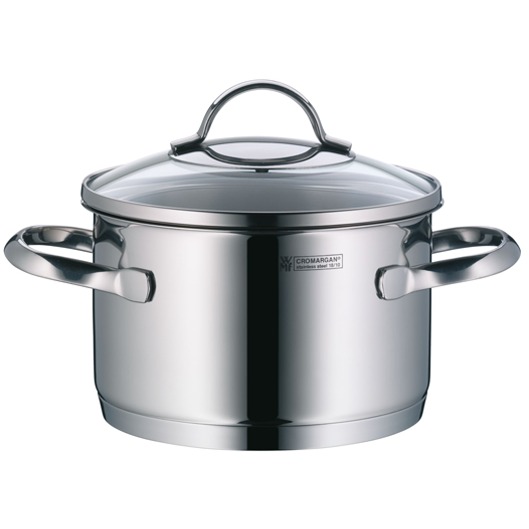 – Nồi từ WMF được làm bằng thép không gỉ 18/10 Cromargan® độc quyền của WMF. Thép được tinh chế bằng cách kết hợp các kim loại khác làm tăng tính tiện ích của nó. Cromargan® là hợp kim của 18% crôm, 10% niken và 72% thép. Chrome làm cho vật liệu không gỉ; niken làm cho nó chống axit và tăng thêm độ bóng. Thành phần đảm bảo các đặc tính sử dụng tốt nhất và có thời hạn sử dụng gần như không giới hạn. Các sản phẩm với Cromargan® ổn định về kích thước, trung tính về hương vị và kháng axit thực phẩm. Chúng hợp vệ sinh, dễ làm sạch và tất nhiên là phù hợp làm sạch trong cả máy rửa bát.